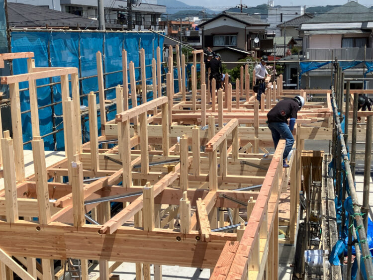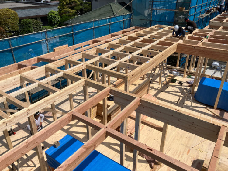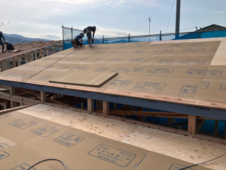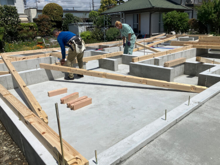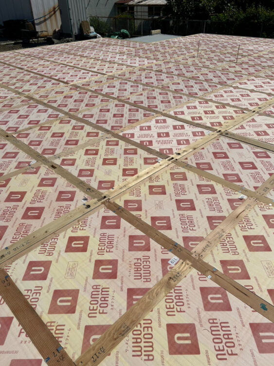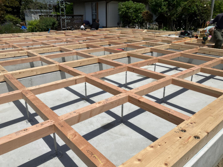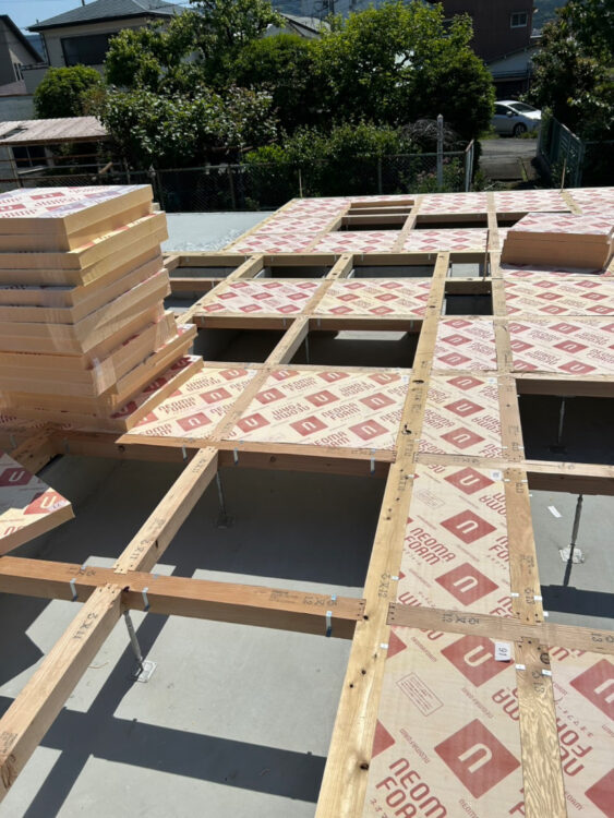 1階の床断熱と剛床(ごうしょう)の完成です。