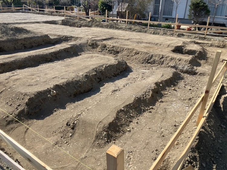 建物の位置を割り出して、土砂を掘削する「地業工事」からスタートします。