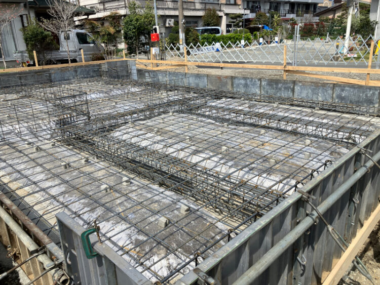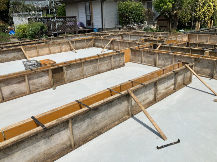 コンクリートの打設は、基礎底盤と立ち上がりの二工程です。