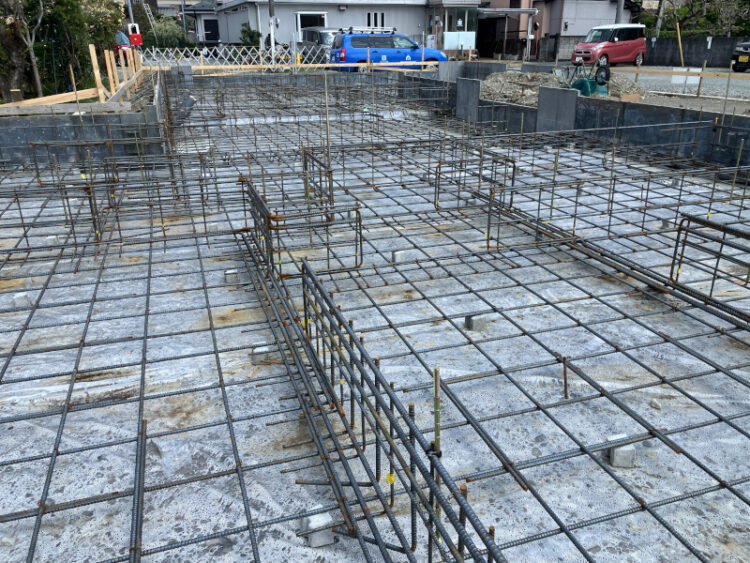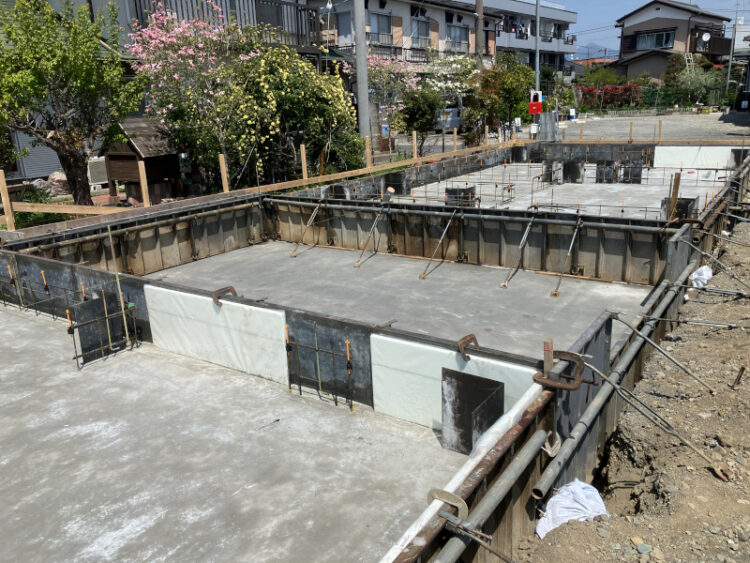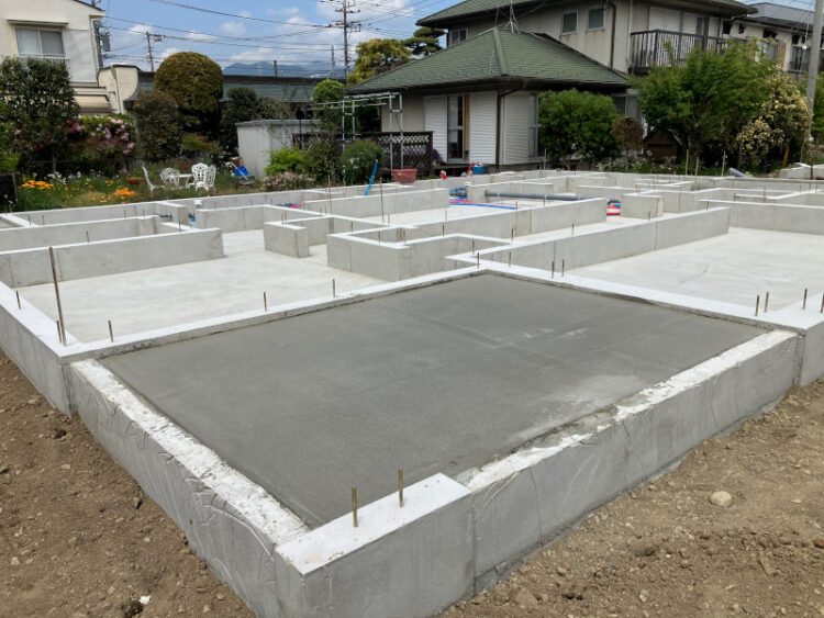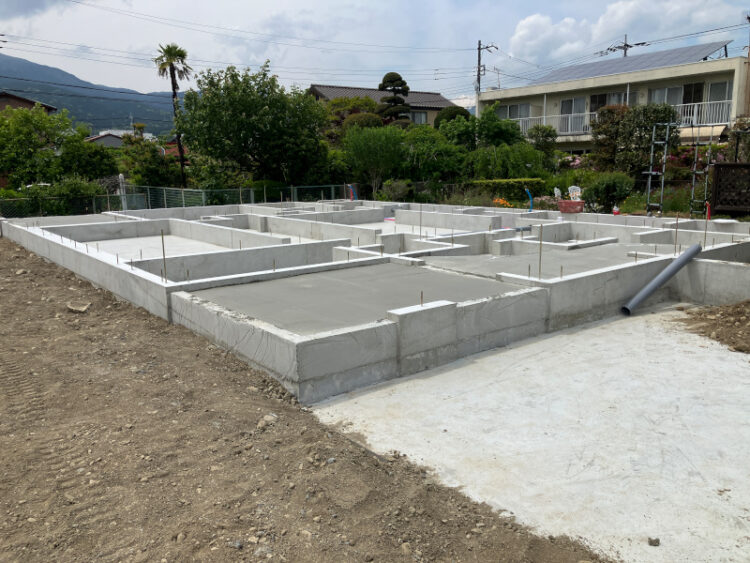 型枠を取り外すと、立派な鉄筋コンクリート造のべた基礎の完成です。