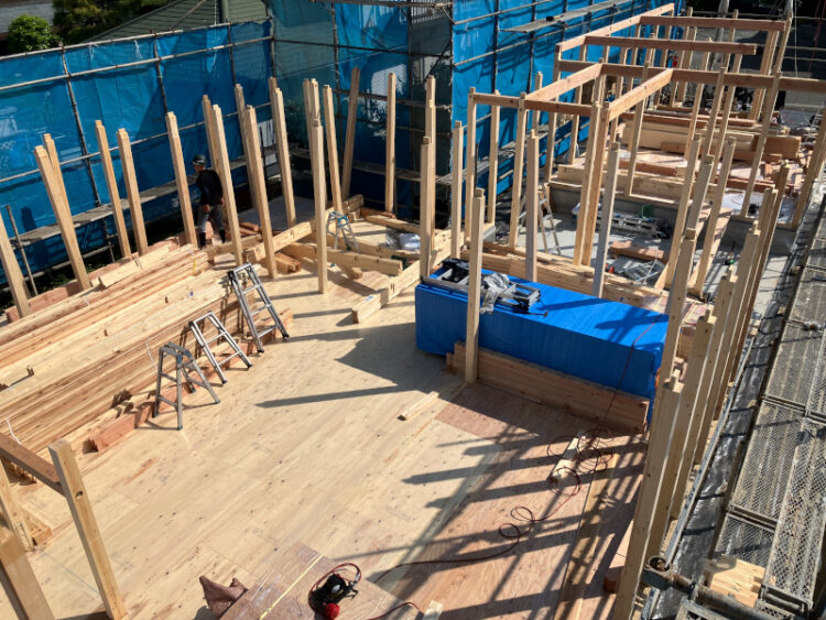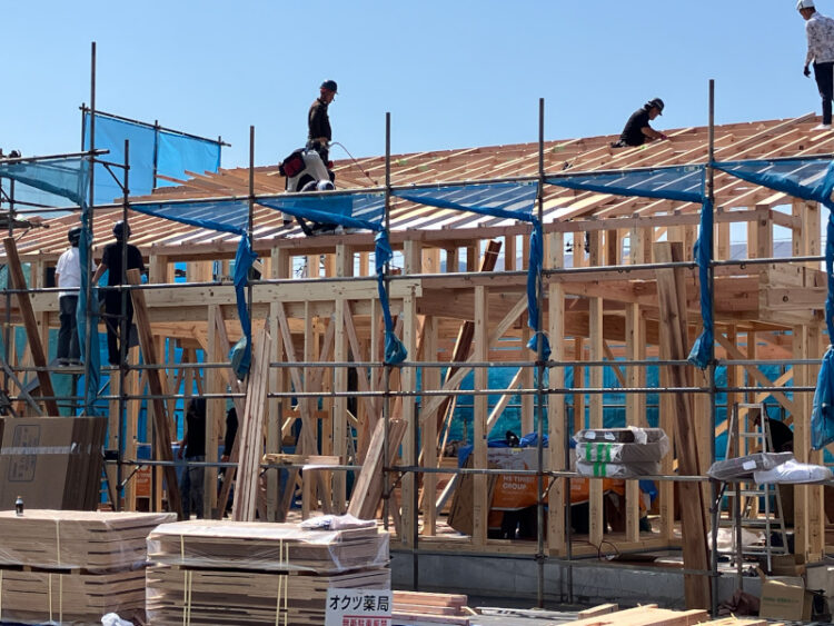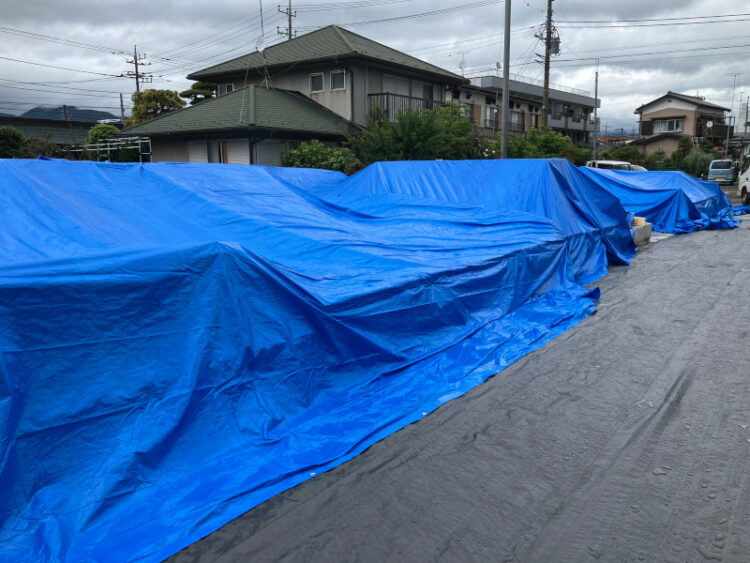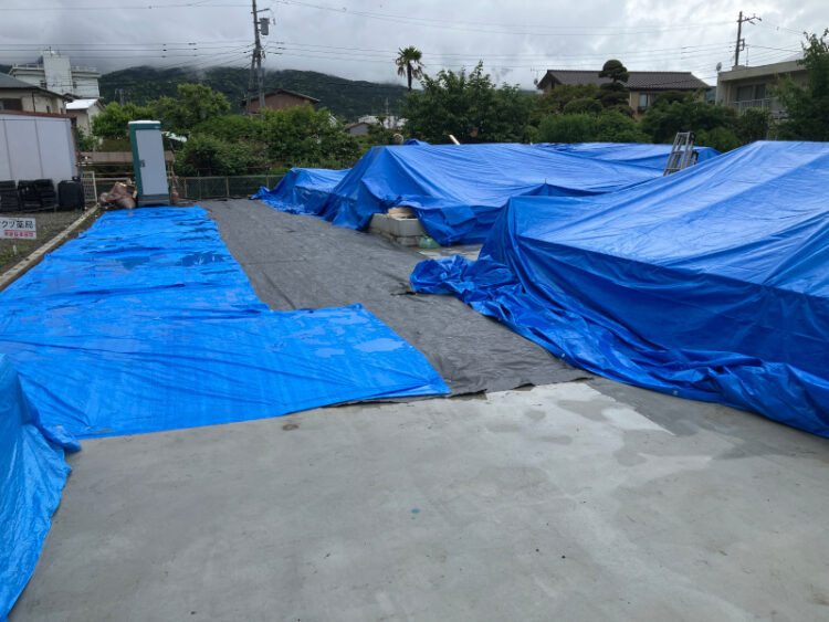 しっかりと雨養生を施し、上棟の日を待ちます。