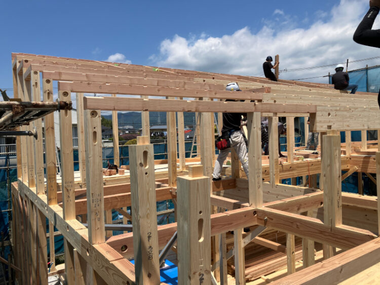 屋根の頂上の水平材を「棟木・むねき」と呼びます。