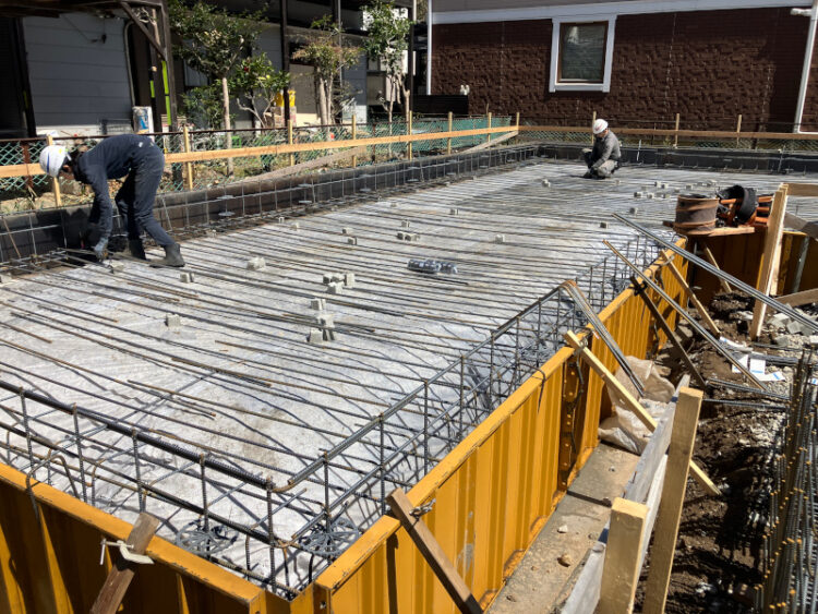 コンクリートの打設は、ベースコンクリートと立ち上がり部分の二段階です。
