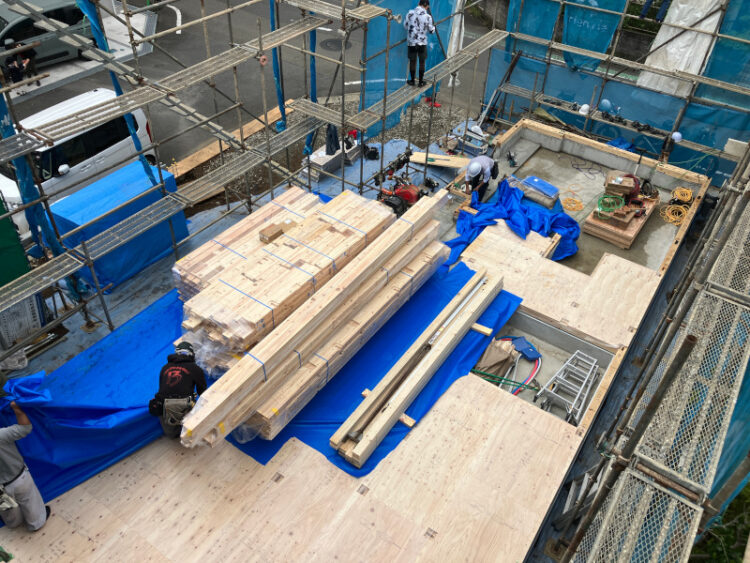 新進建設の上棟は「雨に濡らさない家造り」です。