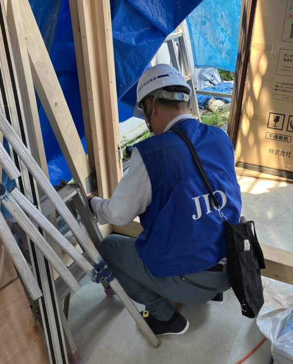 耐震用の筋交いと構造金物が緊結された時点で、第三者機関による構造検査が実施されます。