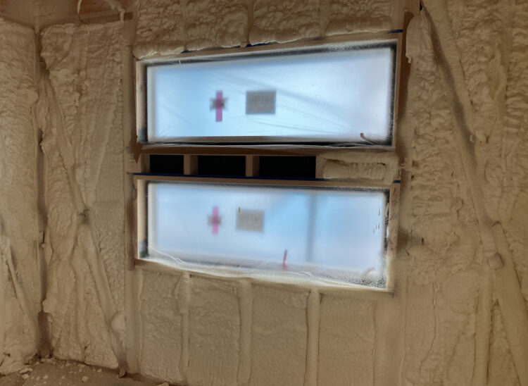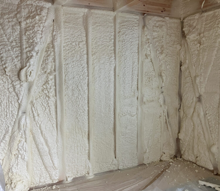 現場発泡のウレタンで外壁と天井裏を包み込みます。