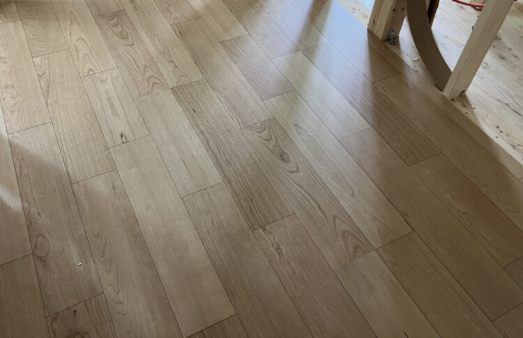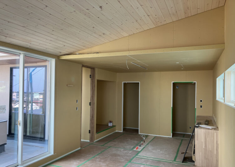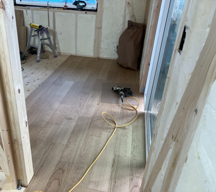 ブルーシートで大切に養生された室内で、本格的な木工事が始まりました。
