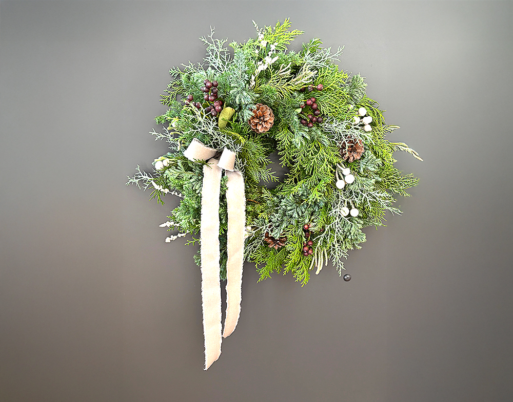 仕上がったリースは、そのまま飾れる華やかさ。