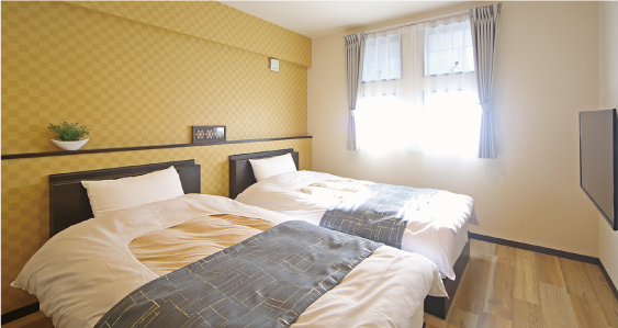 アクセントクロスが映えるモダンな寝室は、和室と洋室の2タイプをご用意。カウンター式の書斎コーナーでリモートワークも快適に行えます。
