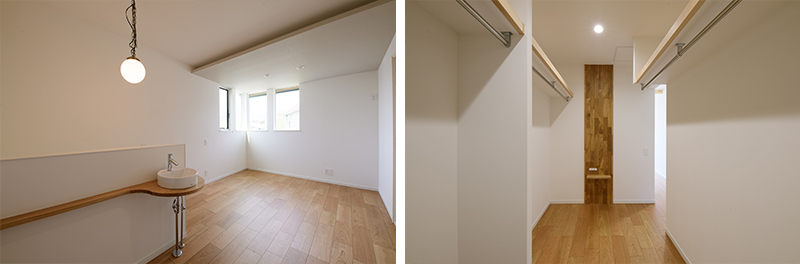 2階には、将来的に仕切ることができる広々とした子ども部屋を配置。 さらに、寝室と家族全員で使えるファミリークローゼットを設けることで、 成長やライフスタイルの変化に柔軟に対応できるフレキシブルな空間としました。 世代を超えて快適に暮らせる、機能的で温かみのある住まいです。