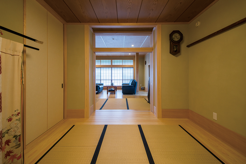 引戸と欄間障子を戸袋に隠すと、書斎へ続く伸びやかな視界が広がります。