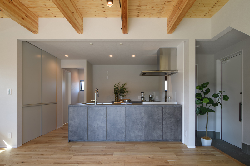 新しく誕生した“A・ALTO”は、エネルギーを自給自足するZEH仕様。家計と地球に優しいエコな住まいは、災害時の備えとしても優秀です。住性能と併せて、あらゆる暮らしに対応するシンプルな間取りも大きな特⾧。無駄を省きコストを抑えつつも、標準仕様を強いることなく、ご要望を受け止める懐の深さが魅力です。夫人が希望されたキッチンやバスルーム、シューズクロークもすべて採用。規格住宅とは思えないほど、オリジナリティあふれる住まいとなっています。また、できるだけ扉で空間を仕切らず、のびのびと暮らせるのも“A・ALTO”の特徴。家族はどこにいても繋がっていられます。「今の家では、夫の後に私はついて行き、私の後には猫がついてきます(笑)。いつも近くにいたい家族なので、常に気配を感じられるこの家は、私たちにぴったりなんです」と夫人。