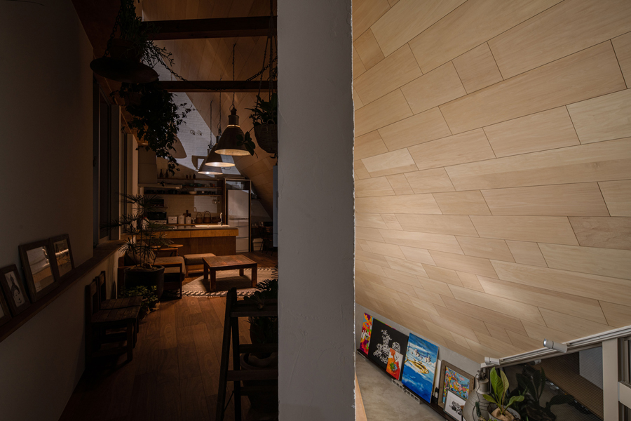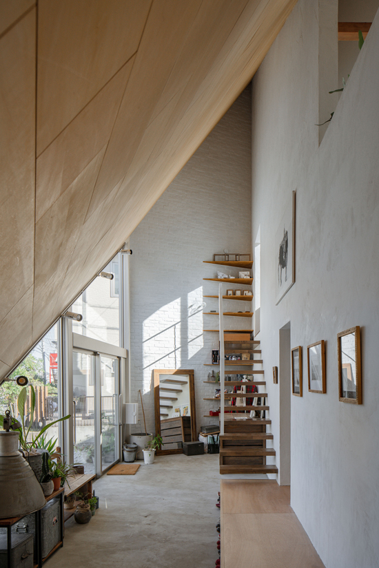 立体的に「広い・狭い」「高い・ 低い」の要素がたすき掛けされた空間は、身体性を揺さぶる設計になっており、アトリエを利用するものにとってイメージを膨らませる住宅になっています。