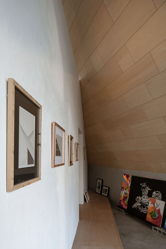 建物内には、小さくこもることができる秘密基地のようなスペースも配置。静かな環境の中で集中できるアトリエやギャラリーとして機能します。